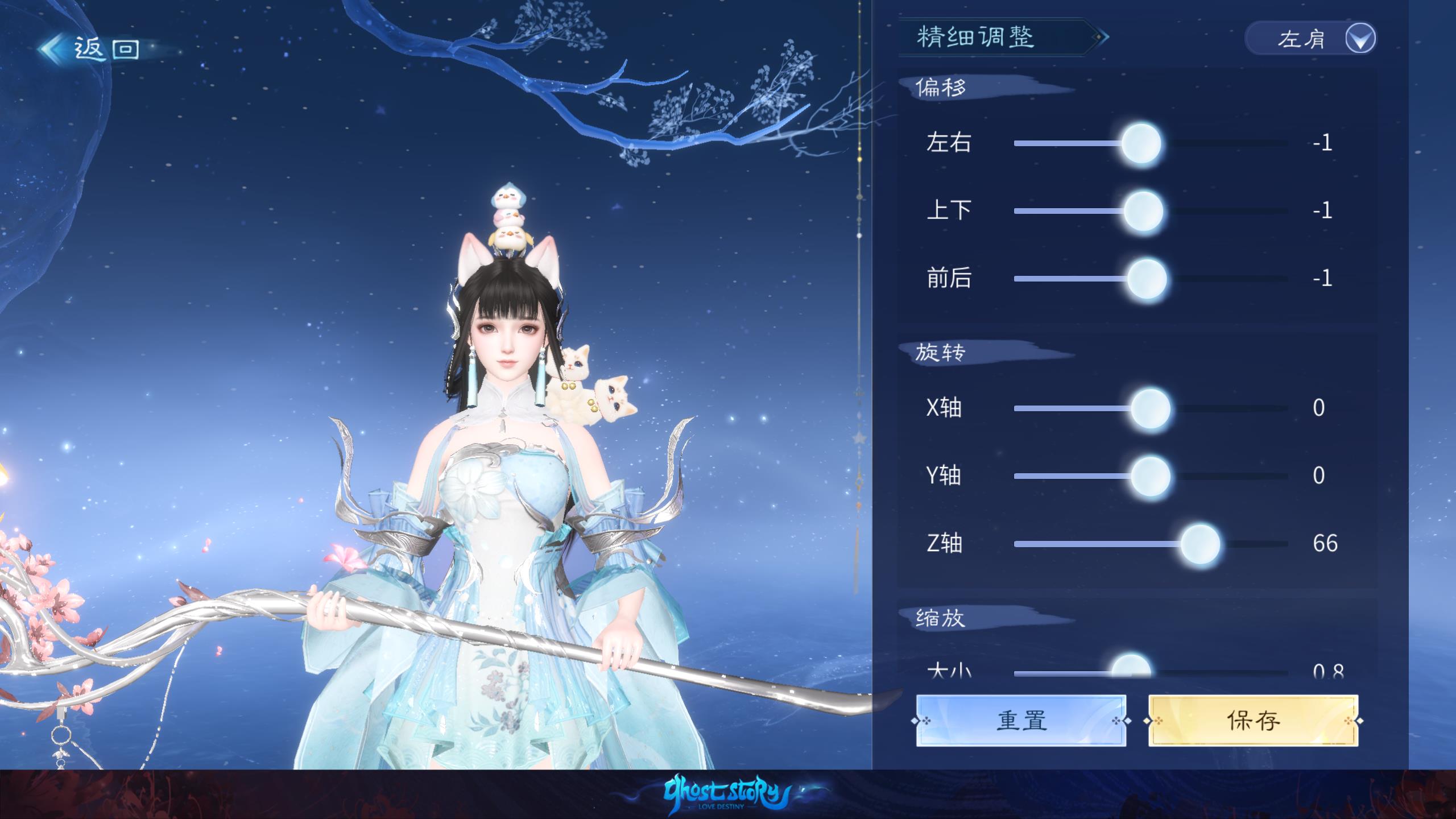 对于配饰,除开启显示外,精细调节功能还支持放大/缩小、移动位置、调整颜色/亮度/饱和度、旋转轴心等。