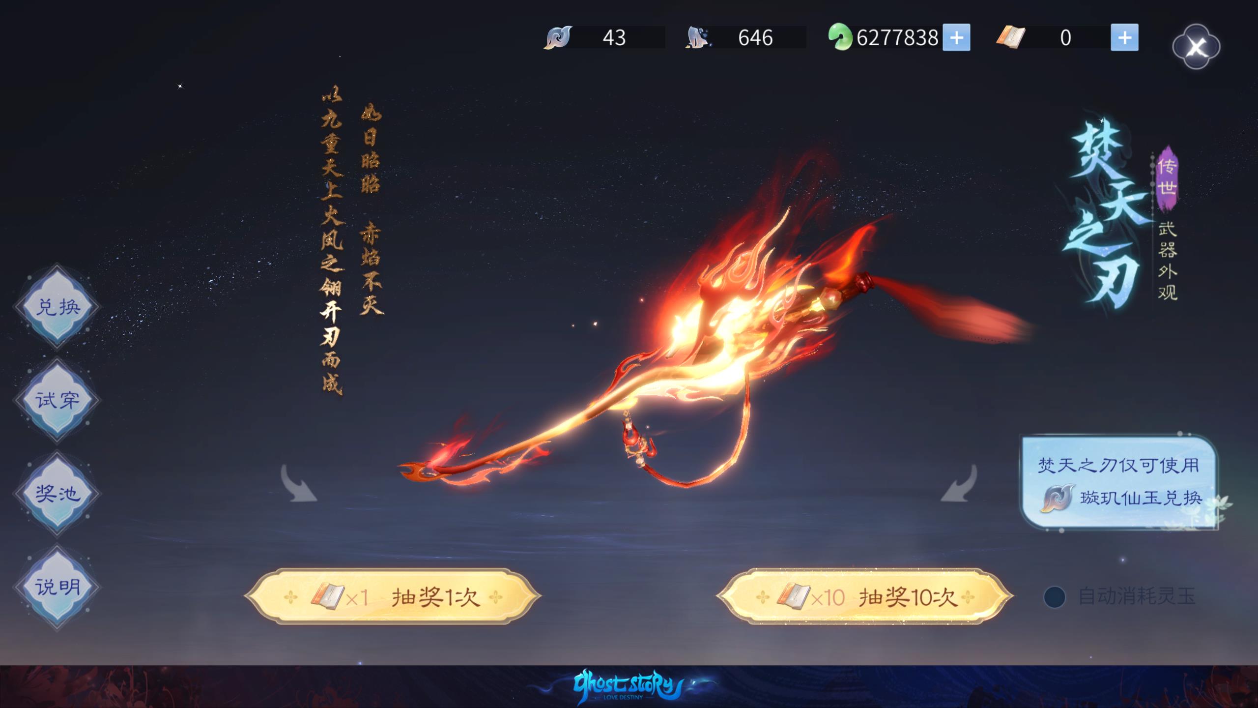 [刀忿天]——首款永久外形武器正式降临三界。今日,运营团队诚挚向大家呈现这件绝美火焰华章。从古至今,在三界八荒中,“火”一直被视为至高灵光,备受神人与凡人敬仰。苍天燃火,照亮尘世,正是[刀忿天]的核心气质。烈火燃烧,涅槃重生,这便是[刀忿天]的象征。