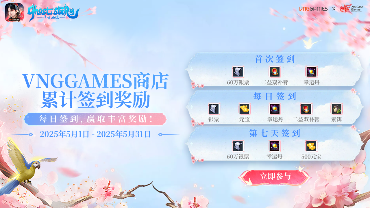 VNGGAMES Shop累计签到礼包活动即将开启!2025年5月1日至2025年5月31日,海量丰厚奖励等您来领取!