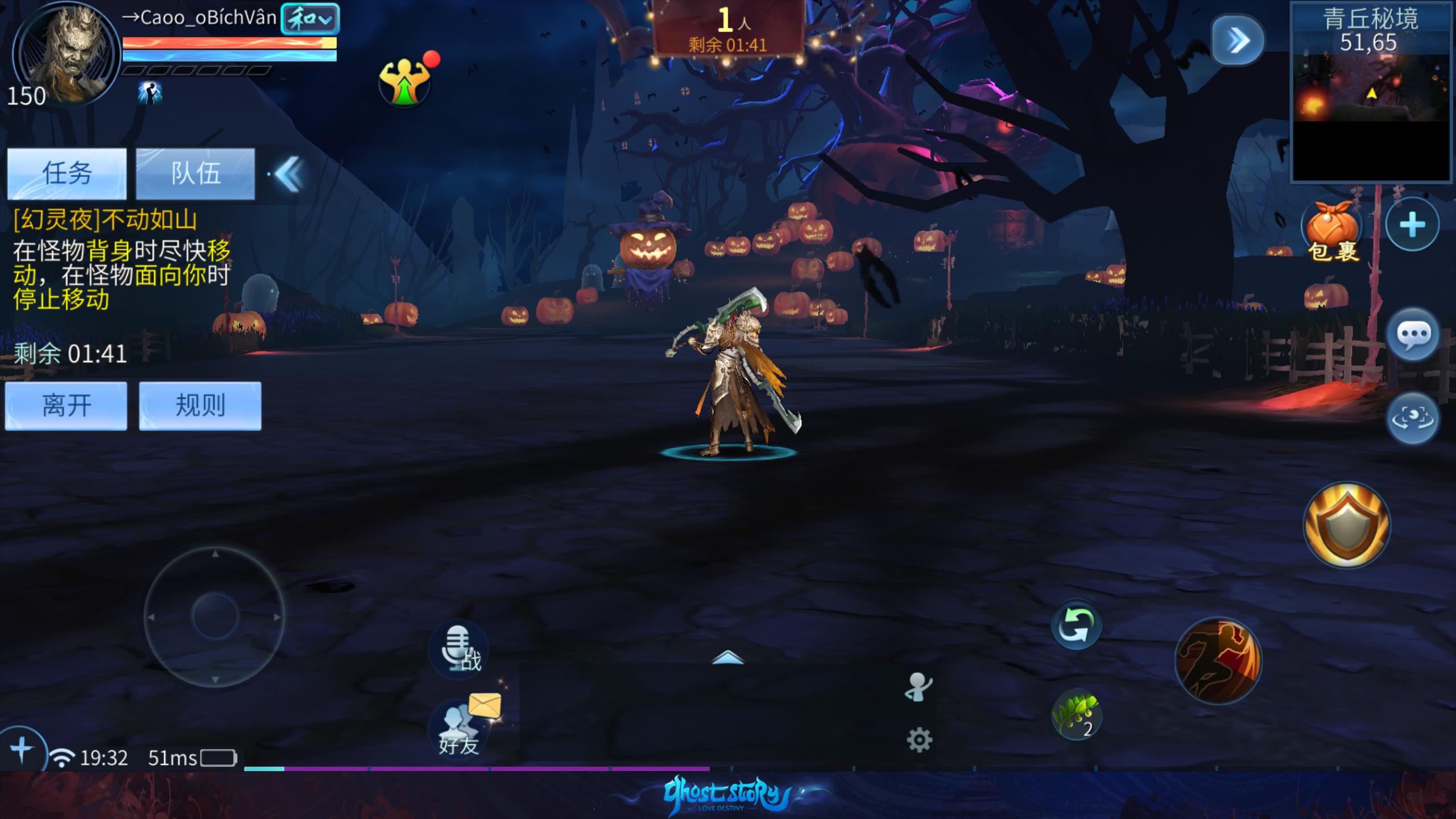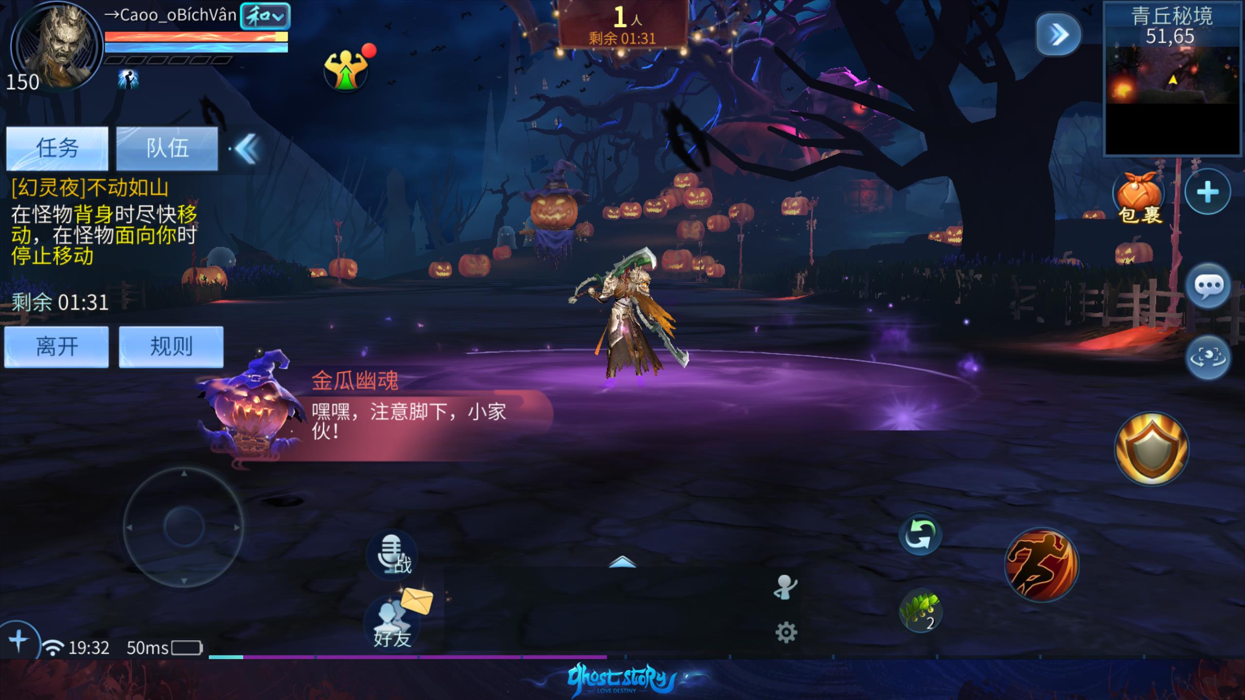 - 当金瓜幽魂背对您时移动,金瓜幽魂转身面向您时必须停止移动。