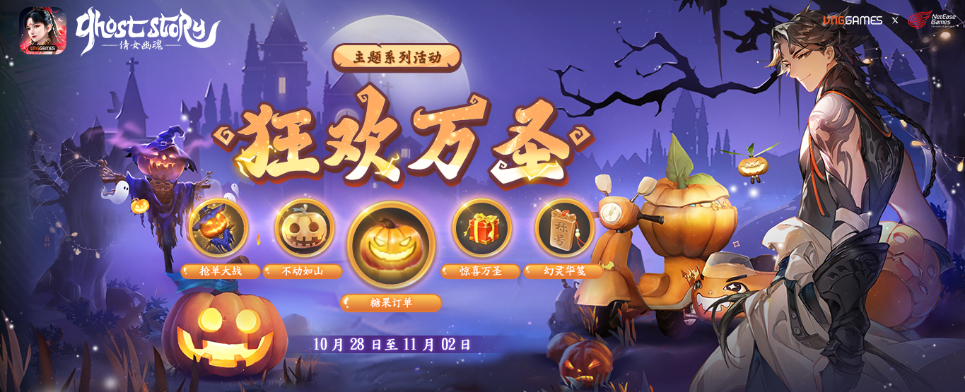 主题系列活动 - 万圣庆典 将于2024年10月28日至2024年11月2日正式更新。我们诚邀大家与阿初一起参与这个精彩的系列活动,赢取 金瓜幽魂拓本礼包、南瓜面具、称号、经验以及其他丰厚奖励。