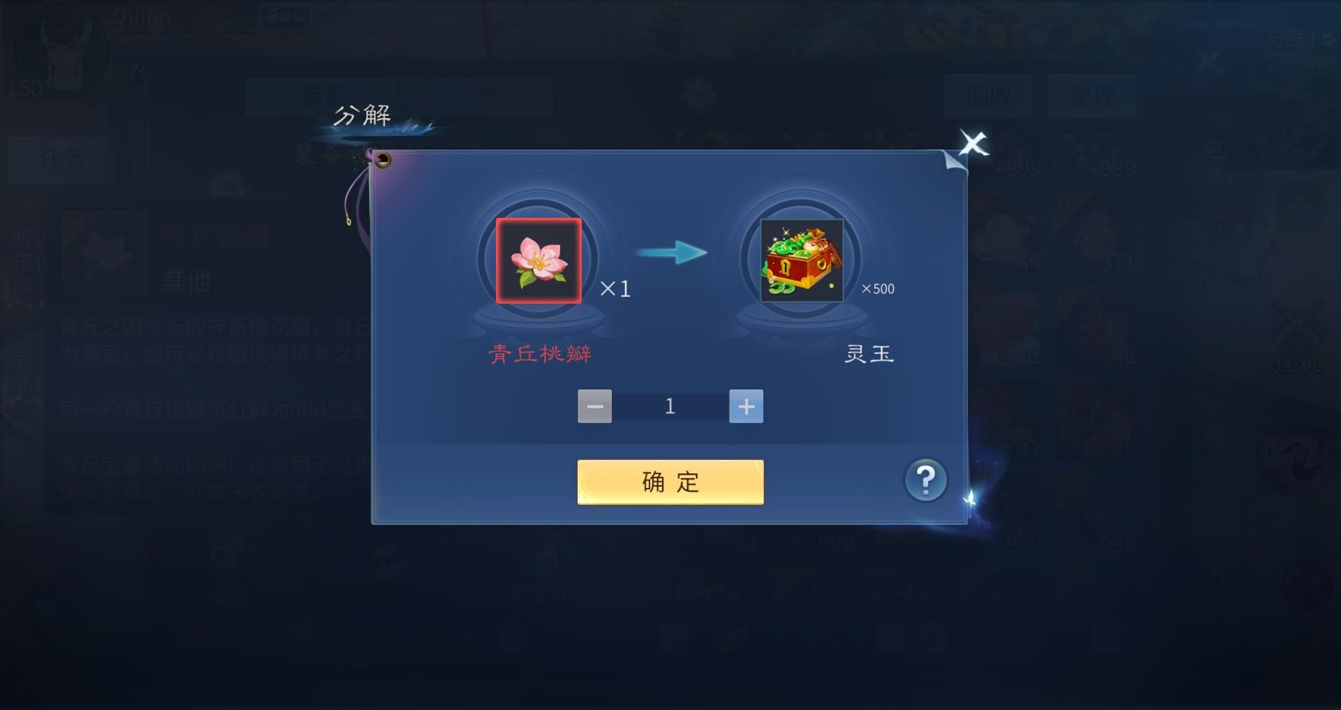 - 无论青丘宝鉴活动是否结束,每一枚青丘桃瓣都可分解为500灵玉。