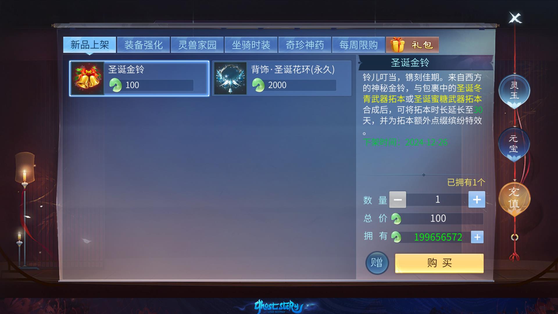 - 前往 商城 => 购买 圣诞铃铛道具。