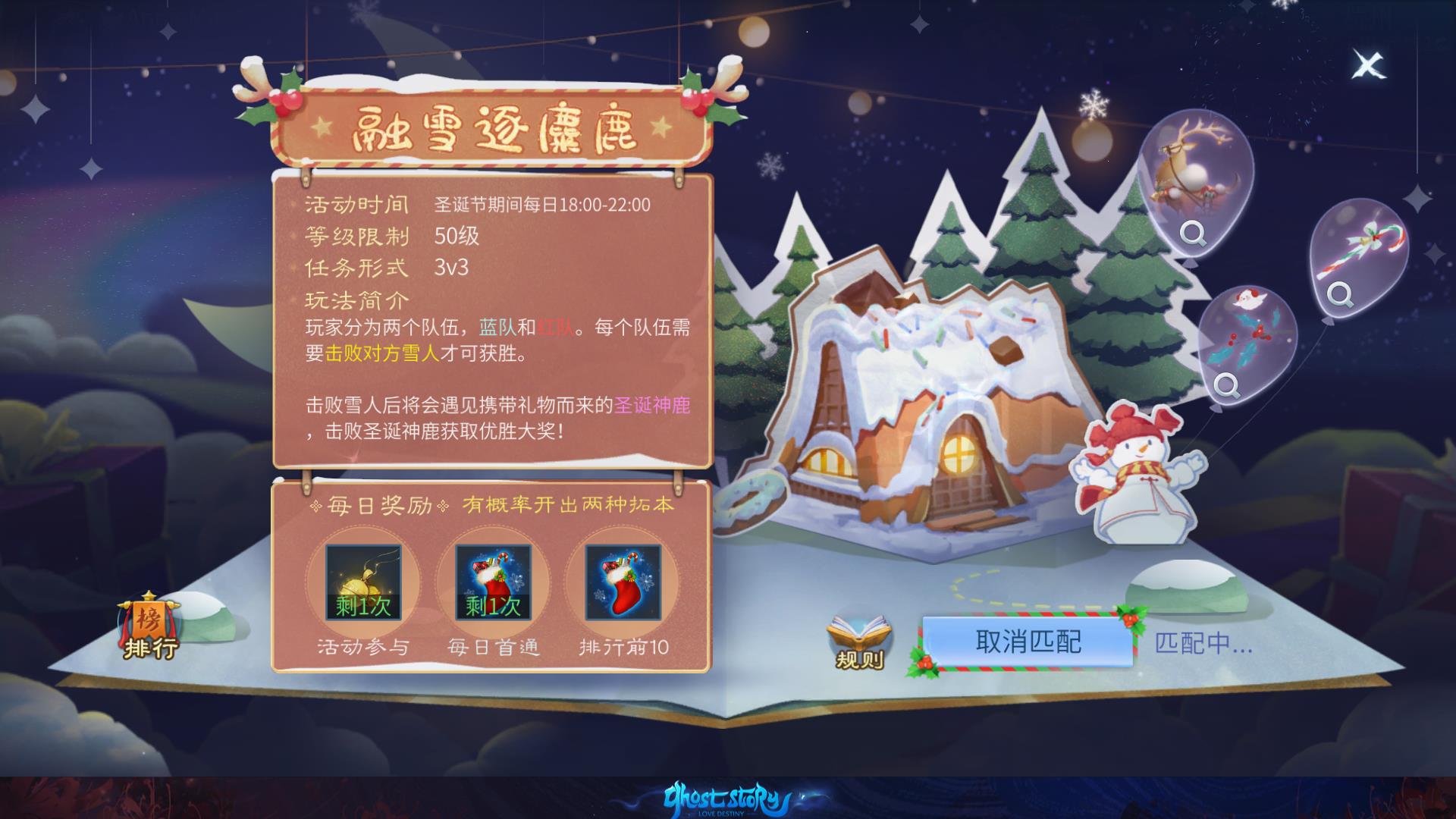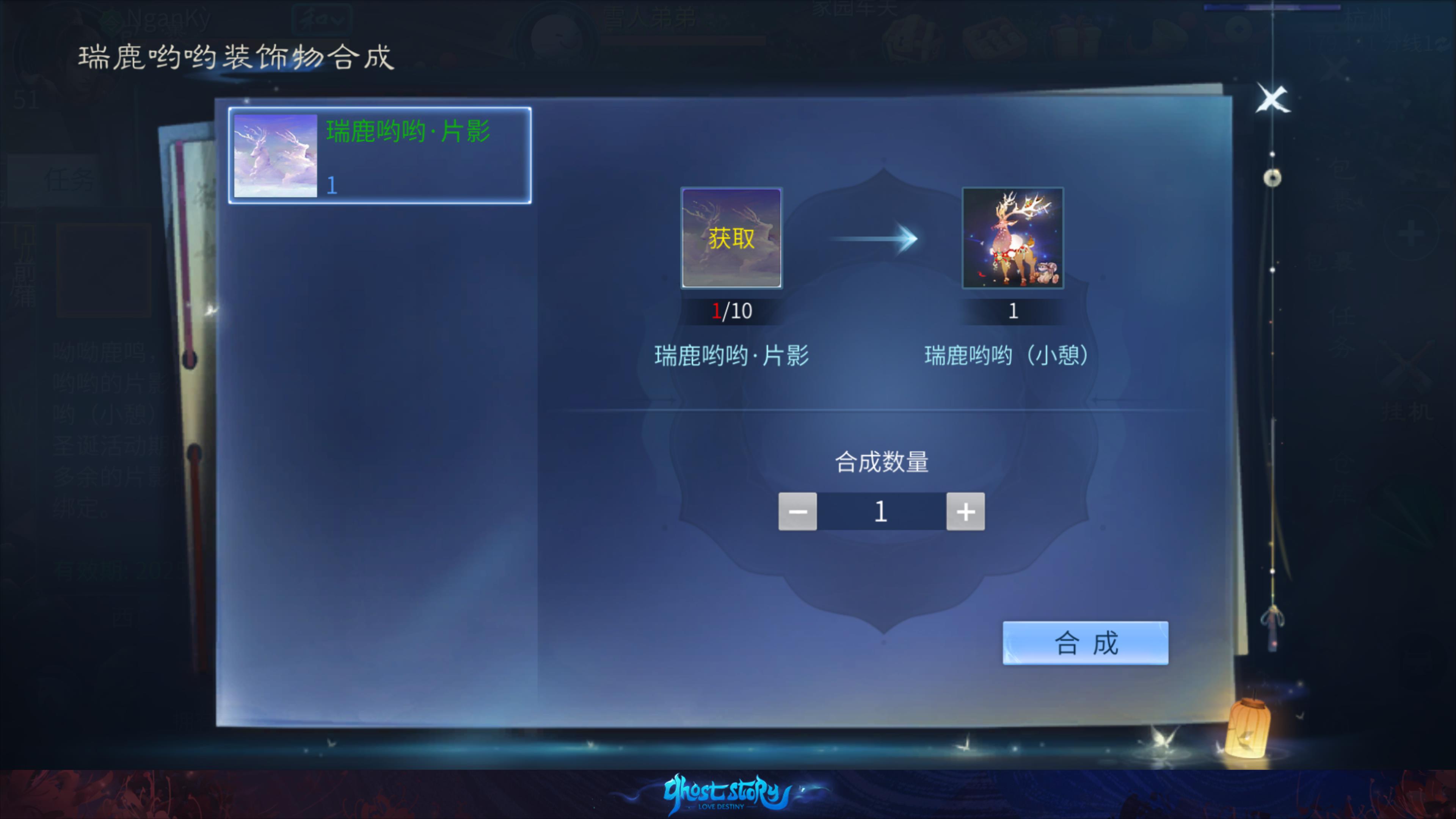 - 奖励: 圣诞礼物, 瑞鹿哟哟(永久), 圣诞特效, 变身丹礼盒, 瑞鹿哟哟·片影