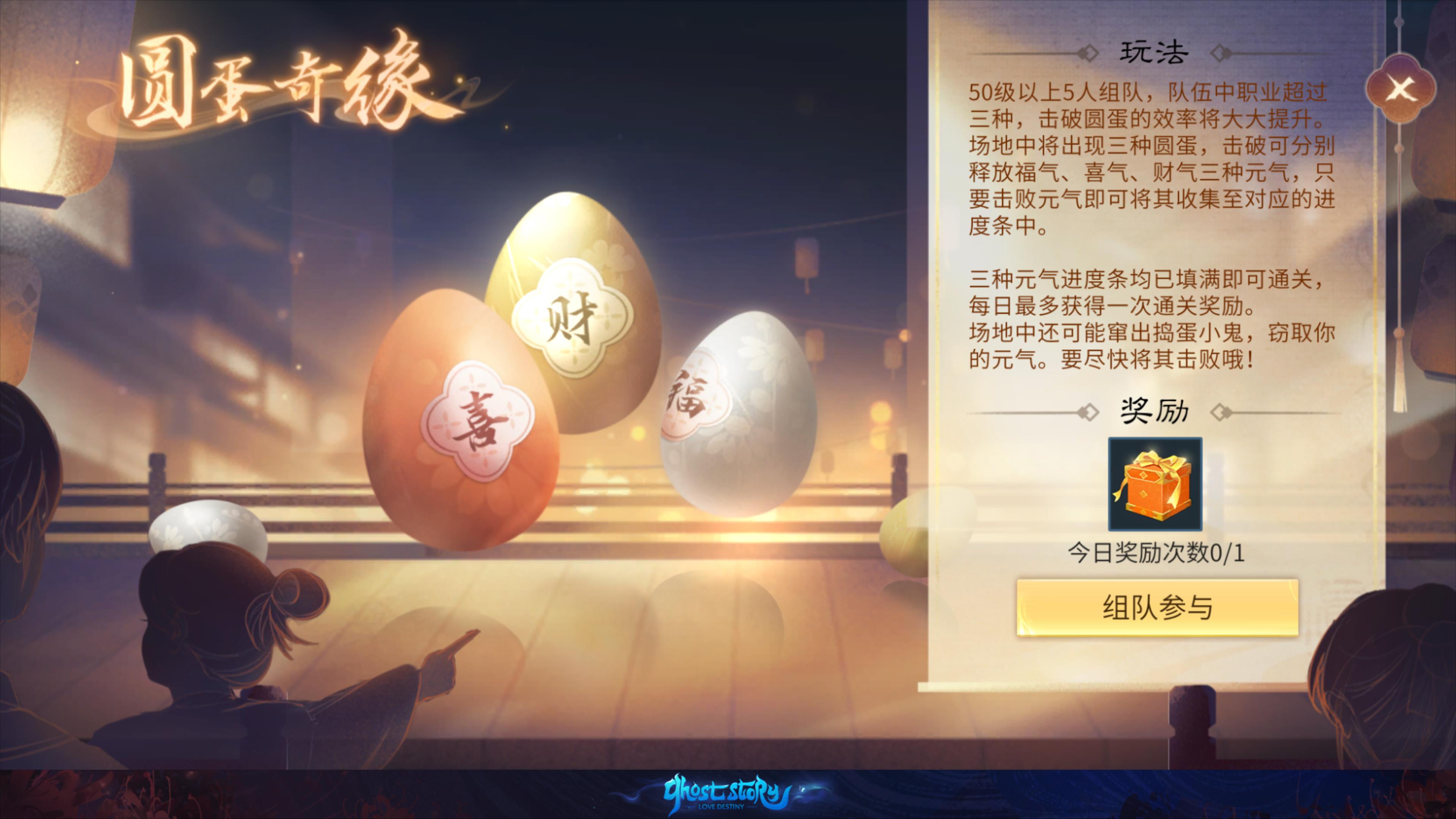 - 破碎圆蛋将释放三种活力:福气、欢乐和富贵。