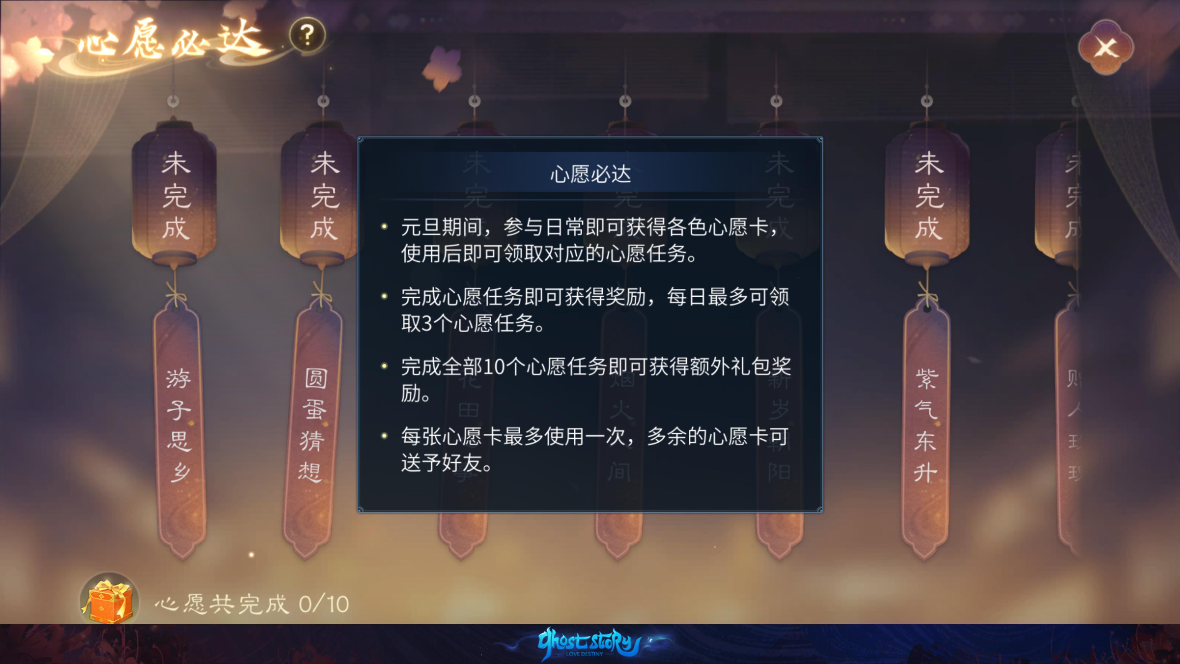- 奖励: 心愿必达礼盒 、事事如意礼盒 。