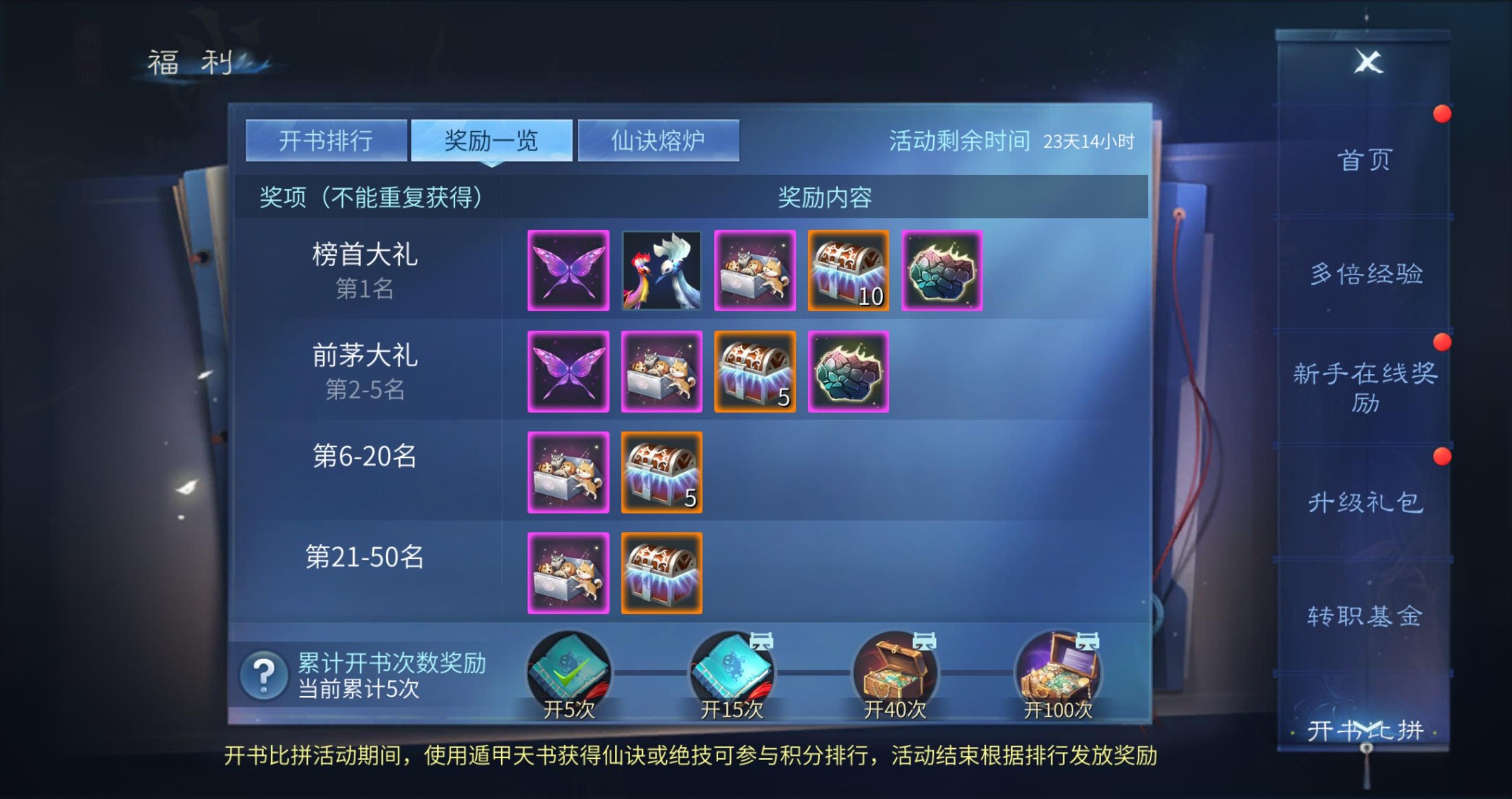- 开启40次: 获得豪华天书宝匣