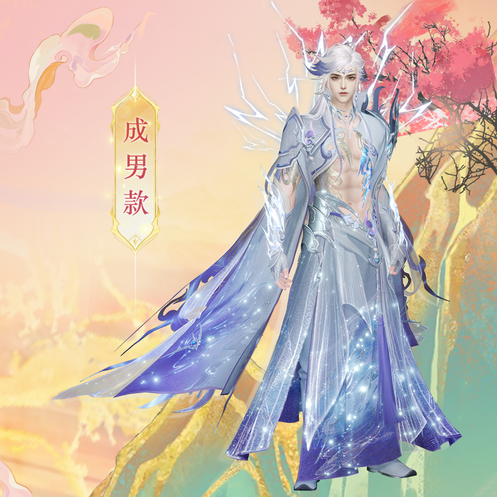 【春山云华】——男角色:冷峻之姿,青紫配色独特,展现三界至高无上的非凡气场。