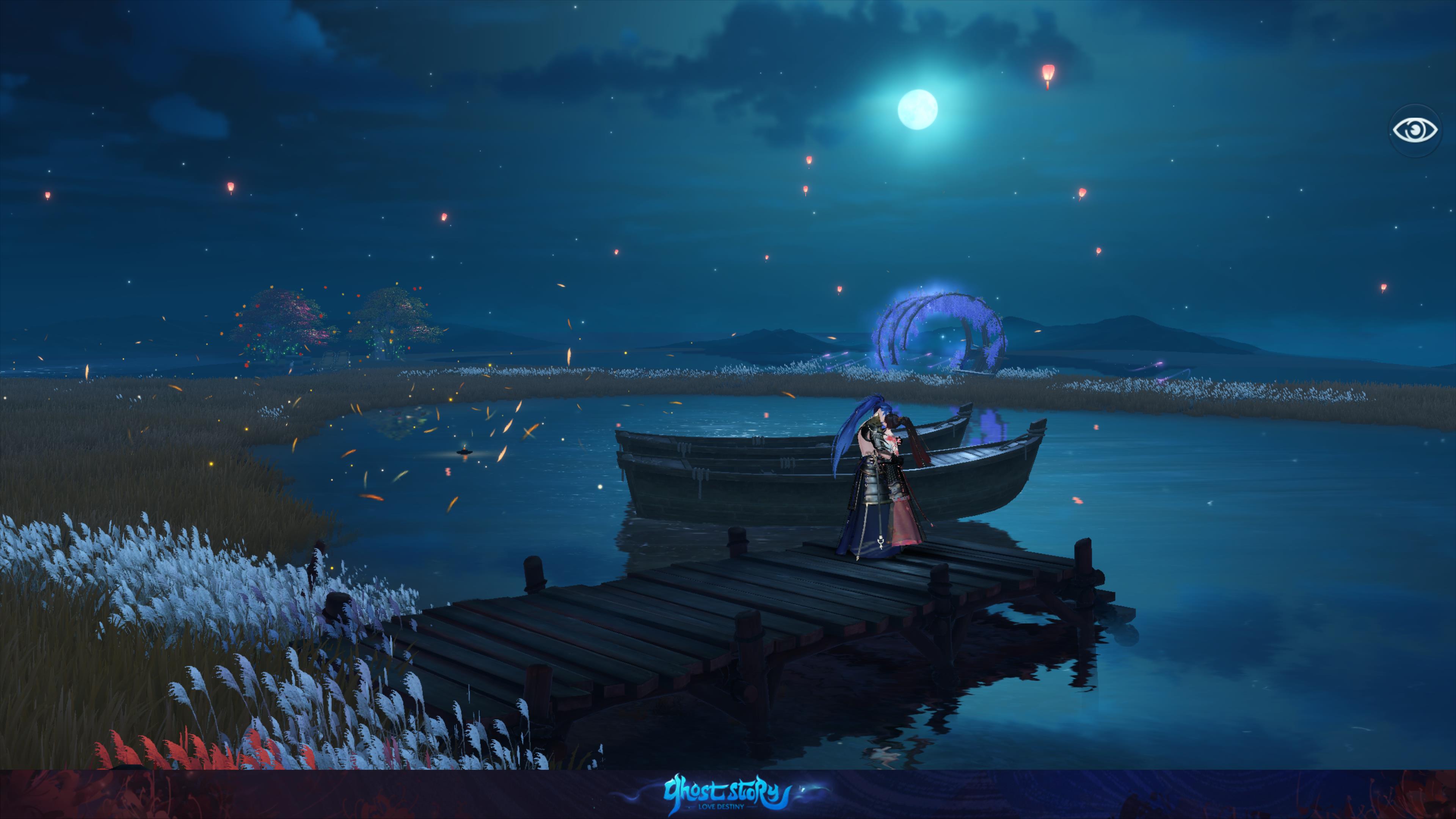 在 昆仑山秘境 中,侠士可放飞祈愿天灯,静赏皎洁月光。