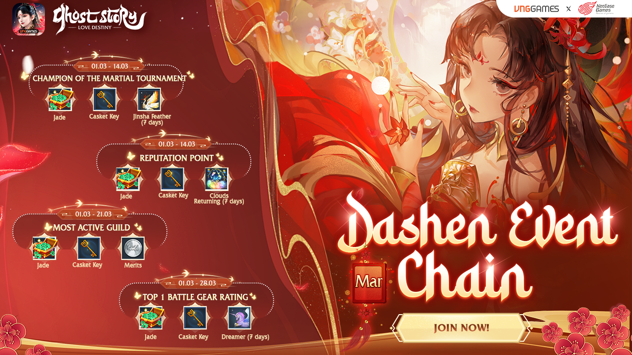 Dear Ghost Mate, March gently arrives, bringing the sweetness of a season of love — a time to honor women on March 8, 2026 and share heartfelt feelings on March 14, 2026. As romance spreads across the Three Realms, the Grand Deity Event Series March 2026 officially begins with exciting activities and valuable rewards. This is a special chance for you and your companions to fight side by side and claim exclusive rewards available only during this loving season. Let every adventure become a meaningful gift — empowering your journey while creating sweet memories in the world of Ghost Story: Love Destiny!