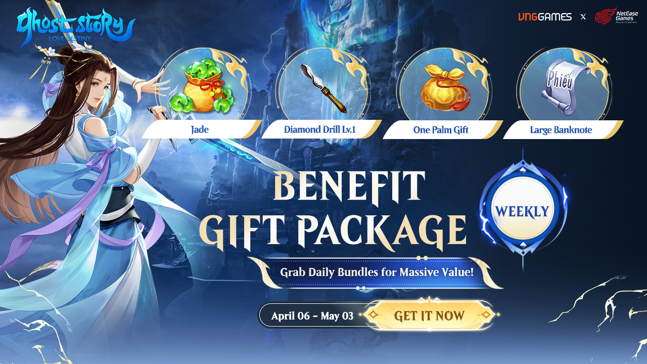 A radiant April has arrived! Ah Chu brings a series of Weekly Limited Benefit Gift Packs with many attractive offers to help you supplement essential resources and enhance your experience in the new month. This is an opportunity to own useful items at special promotional prices, adding motivation to your journey of exploring the Three Realms of Ghost Story.