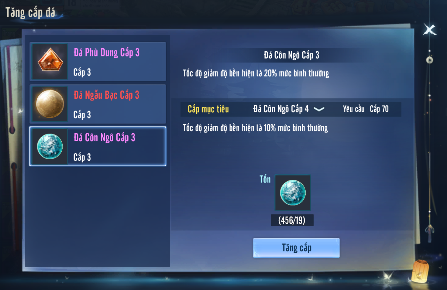 Đá Côn Ngô | Giảm hao mòn độ bền trang bị | Giảm hao mòn độ bền trang bị | Giảm hao mòn độ bền trang bị |
